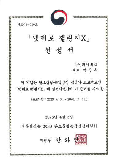 (인증서) 대통령직속 2050 탄소중립녹색성장위원회 넷제로챌린지X 선정서