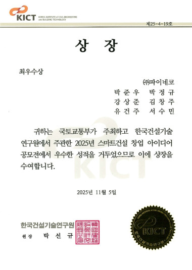 (수상내역) 2025 스마트건설 아이디어 공모전 최우수상