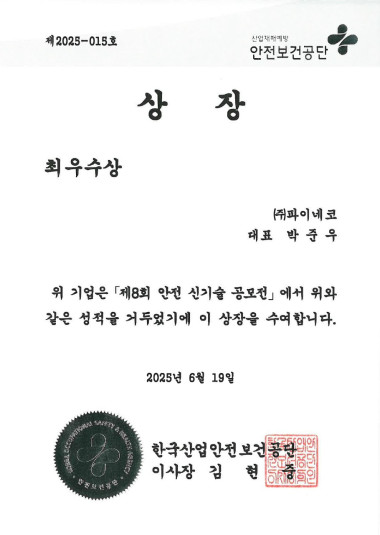 (수상내역) 한국산업안전보건공단 안전신기술 공모전 최우수상